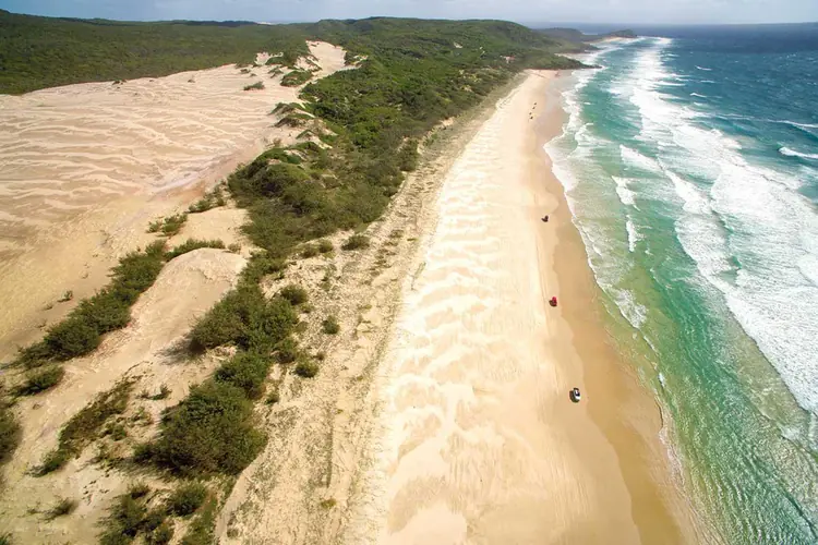 75 Mile Beach, the sand highway stretching the length of K'gari's east coast. ➤